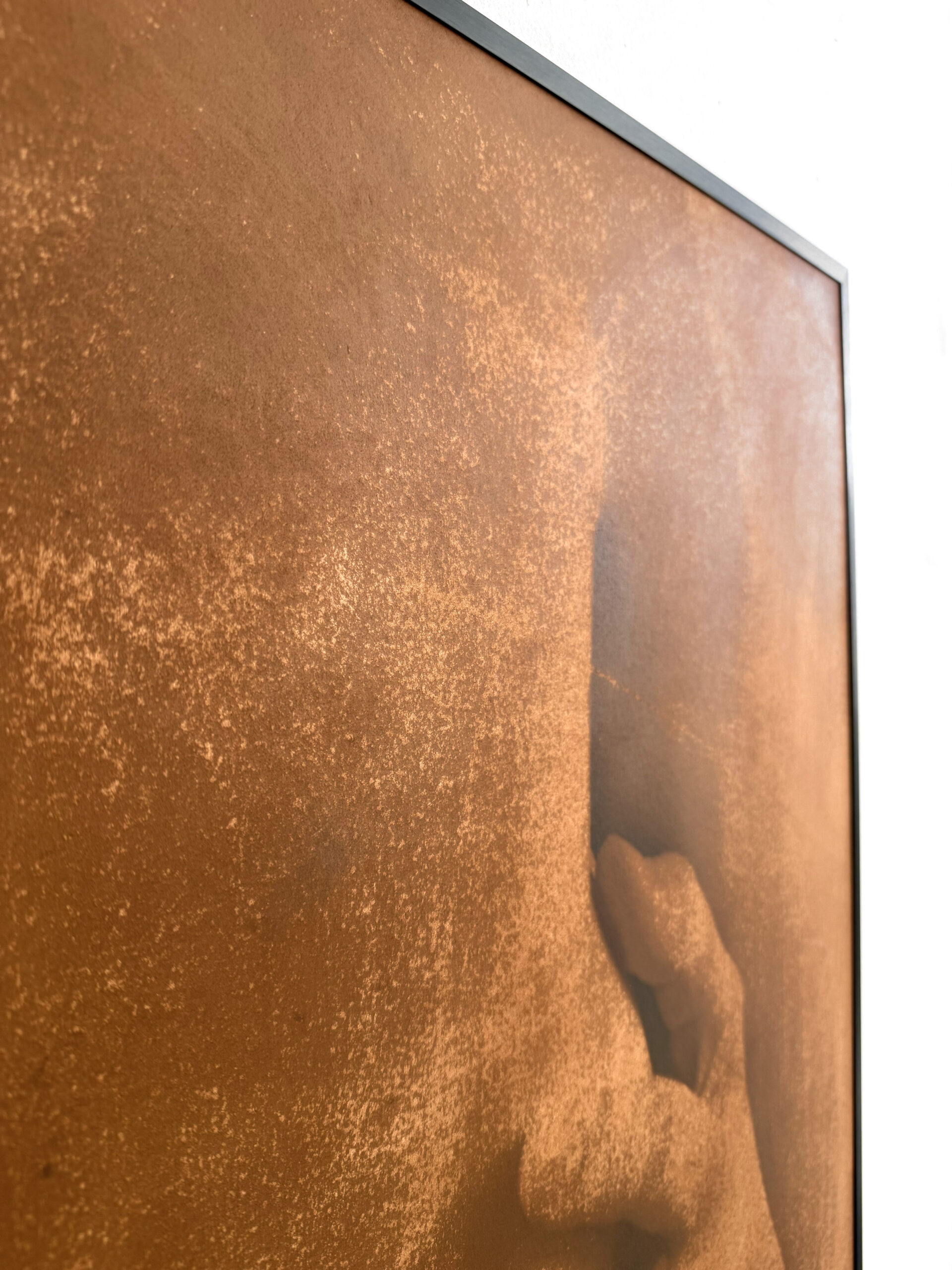 Fine Art print on Hahnemuhle. Mounted on dibond and hand painted with natural pigments. 100×125 cm